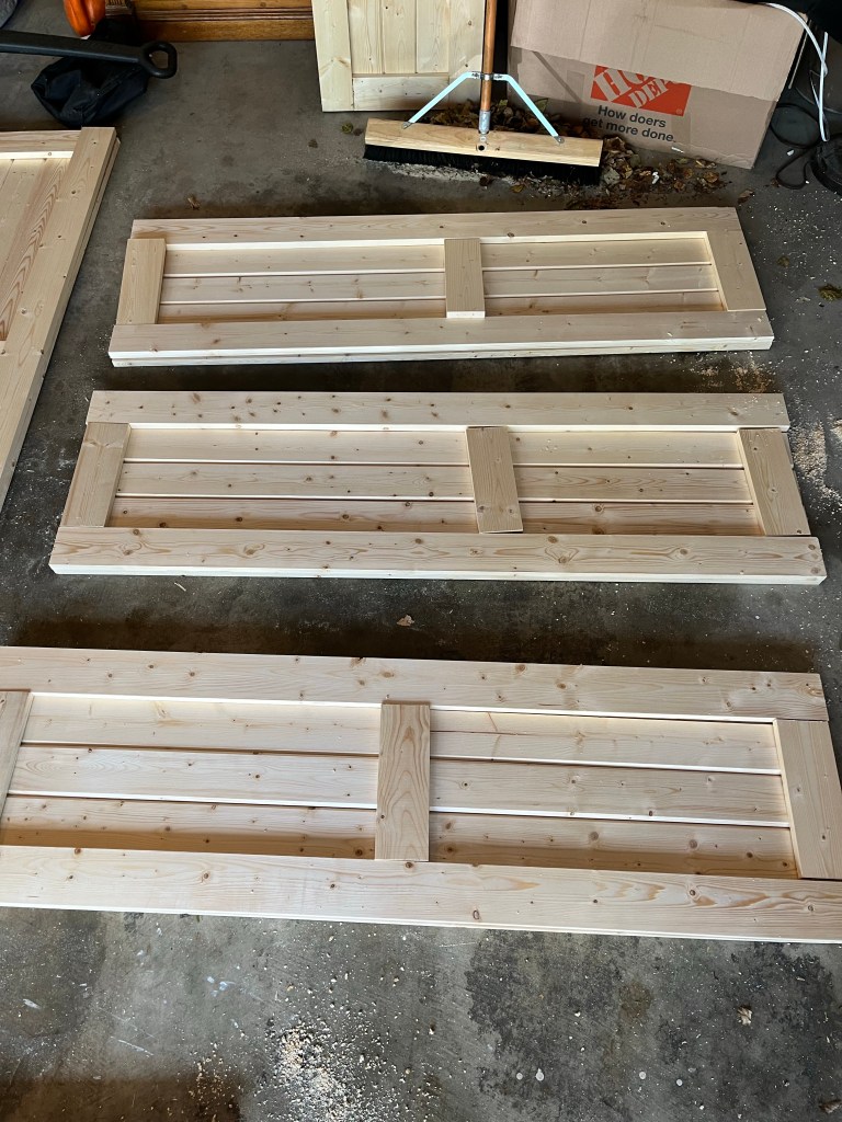 - Fasten the chair railing trim to the base frame using wood glue and nailer. Fill the nail holes with wood filler since the frame will be painted.