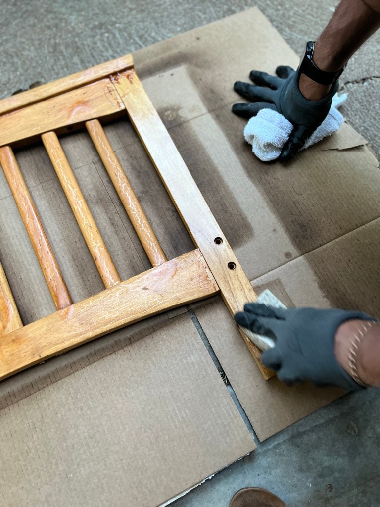 - Using a sponge or brush, apply Rub ‘n Buff to the thickeness you want. The thicker the Buff N’ Rub, the less the chalk paint will show through giving the frame less of an antique look.
