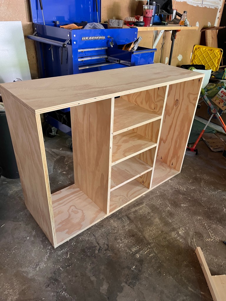 - Using wood glue attach the shoe moulding to the inner lip of the base frame. Due to the overhang of the shoe moulding you won’t be able to nail it so be sure to apply pressure and weight for a bit as the wood glue dries.